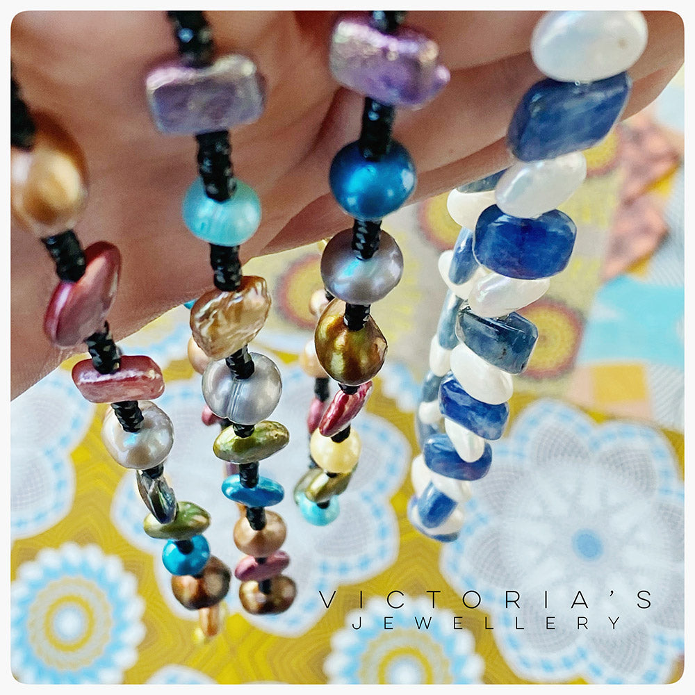 Multi Colour Fresh Water Pearl and Onyx Necklace - 50cm