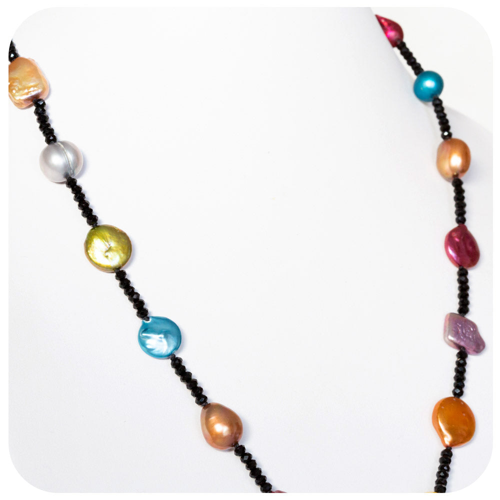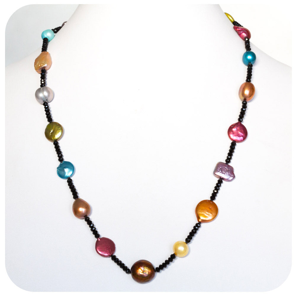 Multi Colour Fresh Water Pearl and Onyx Necklace - 55cm