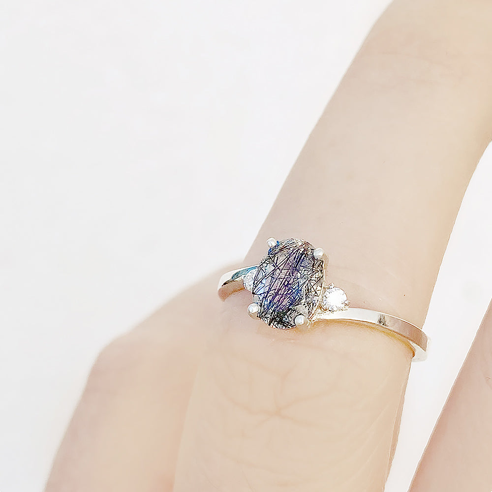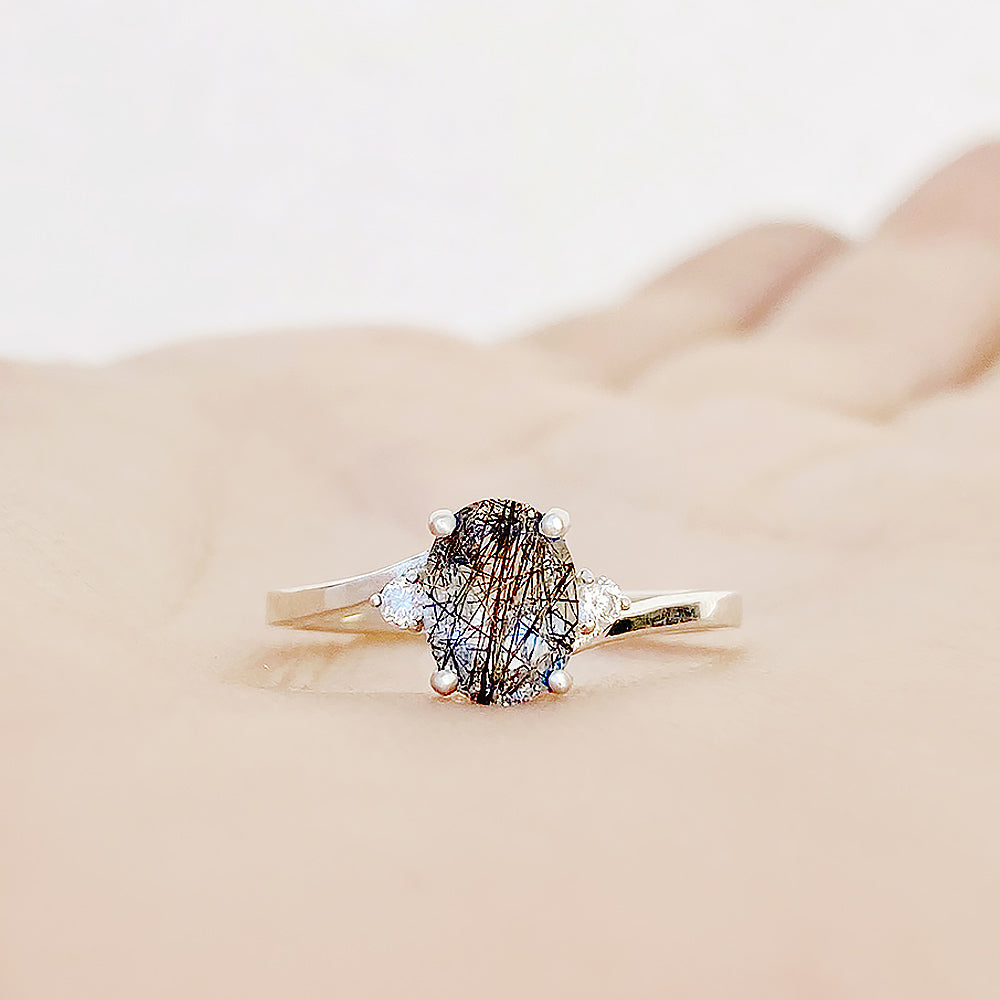 Georgie, Black Rutile Quartz and Lab Diamonds
