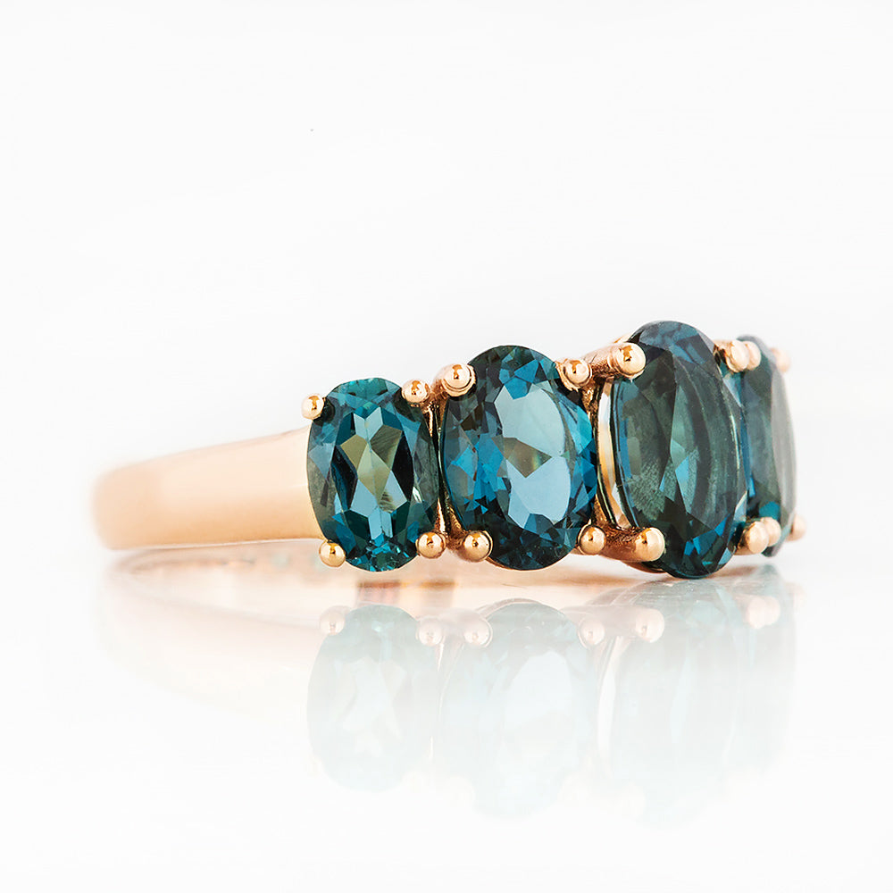 London Blue Topaz stones are symbols of nobility, passion, love and purpose. Half eternity rings are the perfect anniversary or birthday gift as they represent never-ending love and devotion.