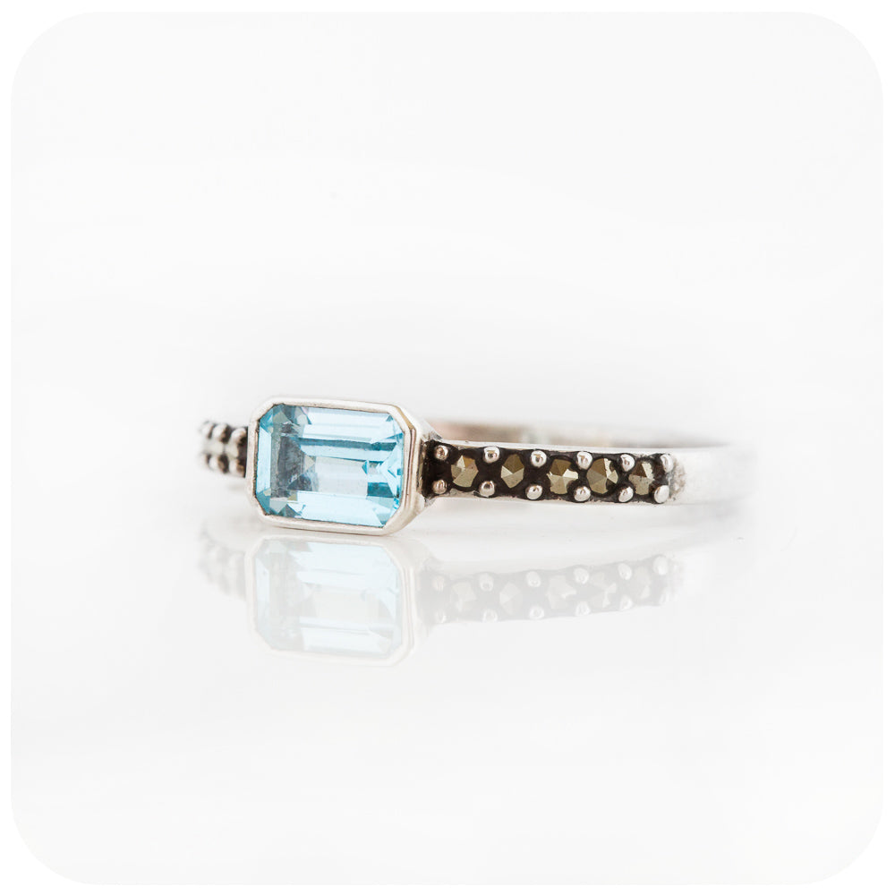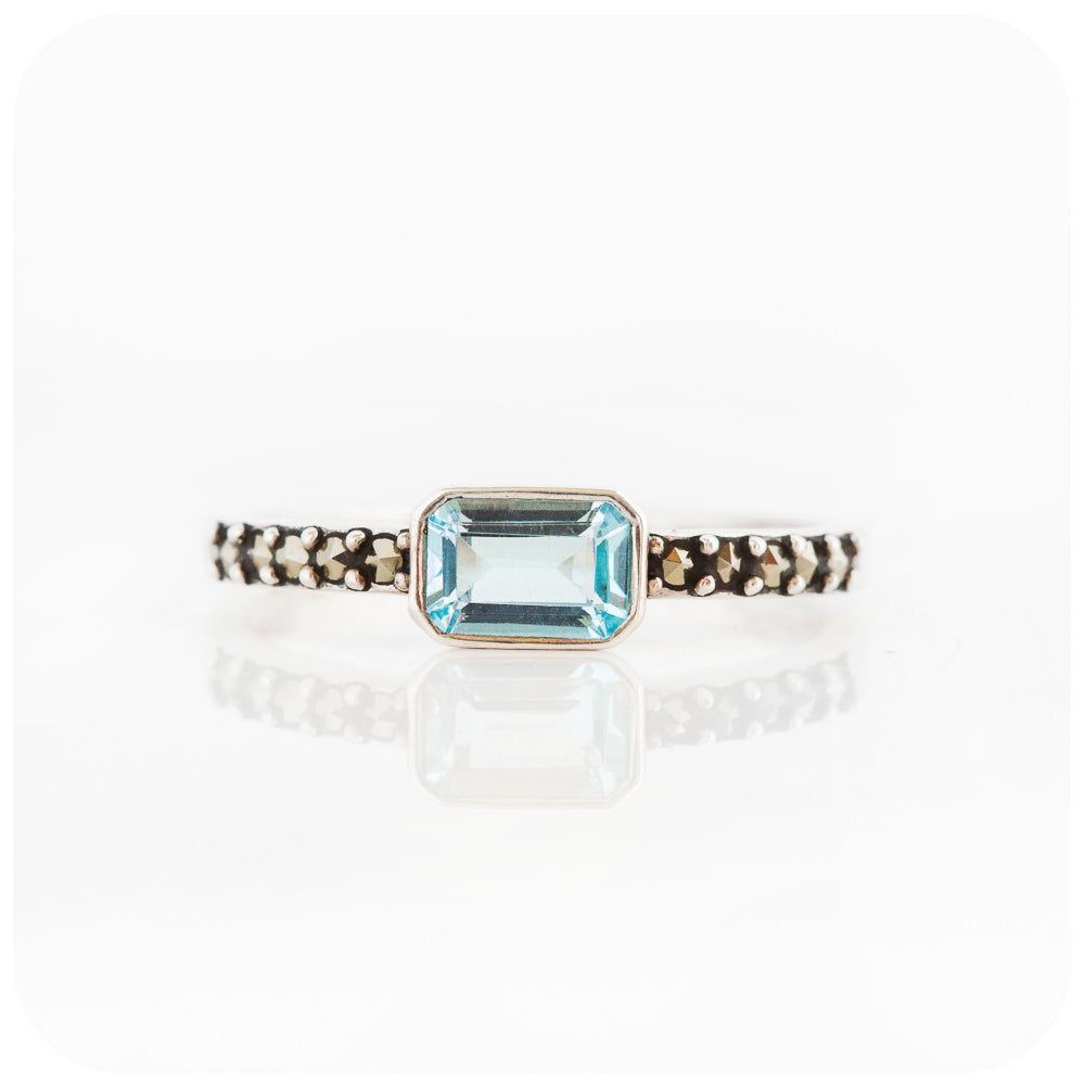 Rectangular Sky Blue Topaz and Marcasite Stack Ring in Sterling Silver