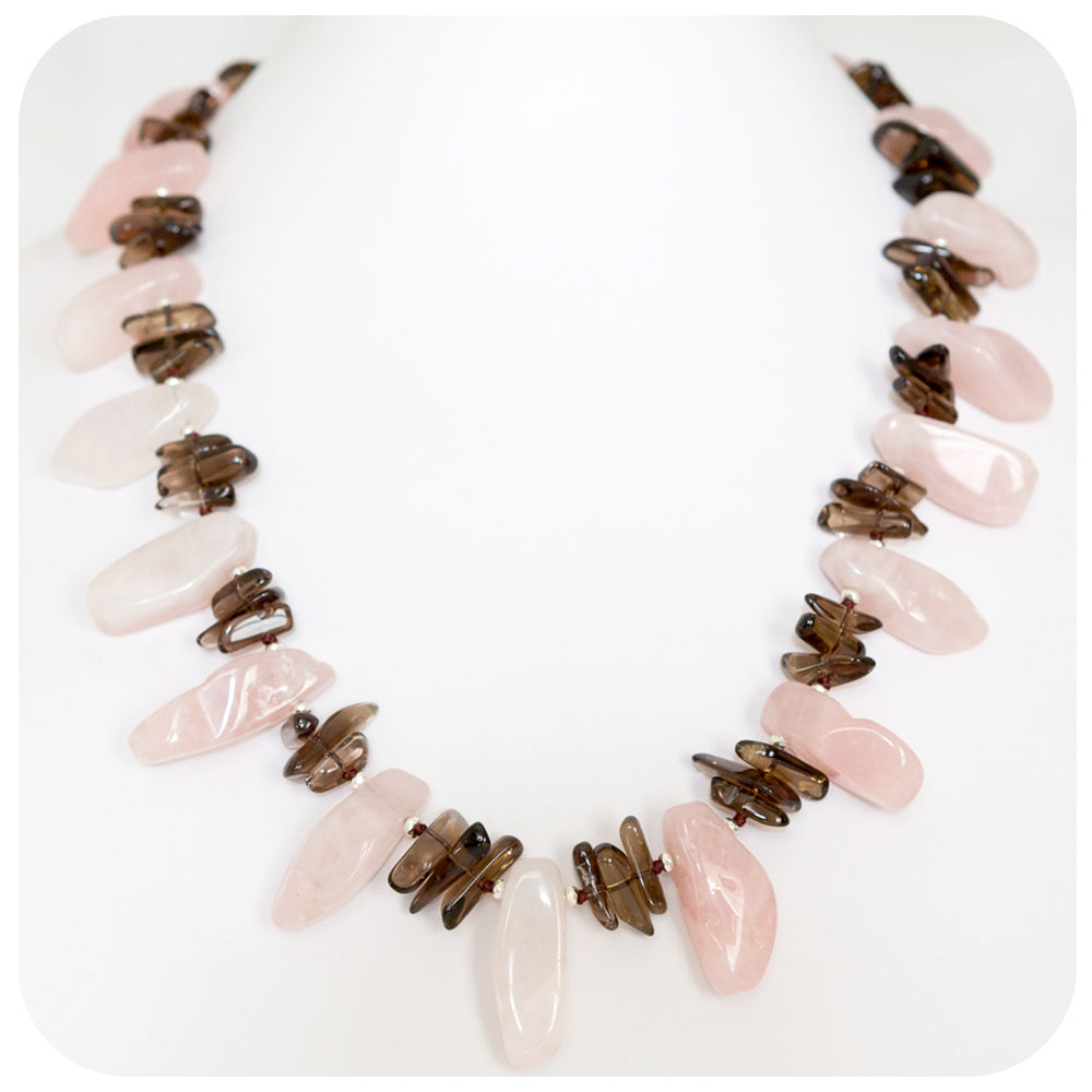 - Individually knotted on brown bead cord with silvered Hematite spacer beads