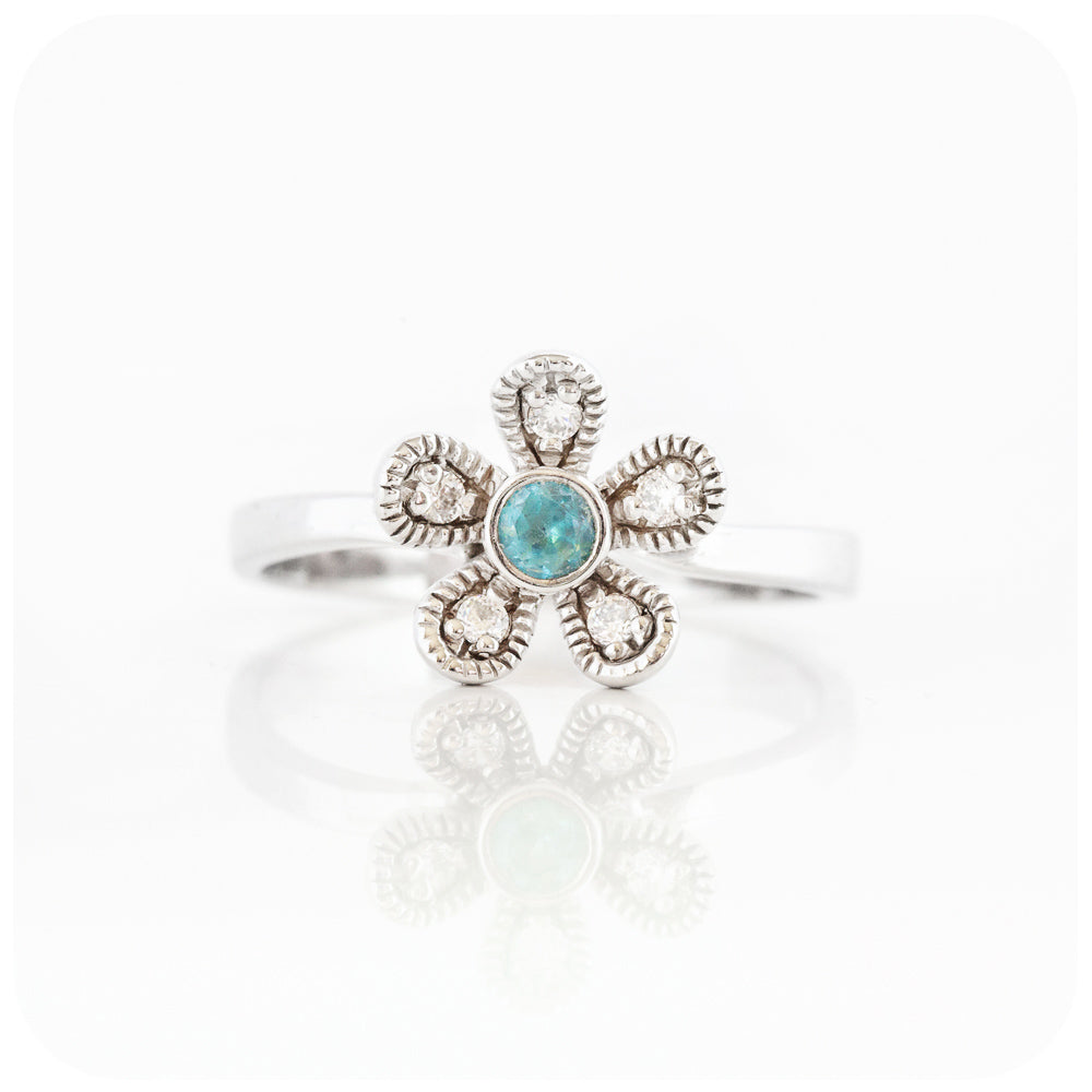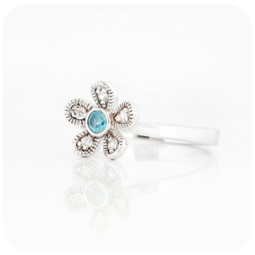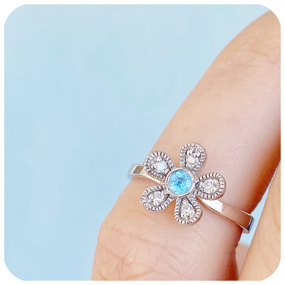 The Flower, Blue Topaz and Cubic Zirconia Ring in Sterling Silver