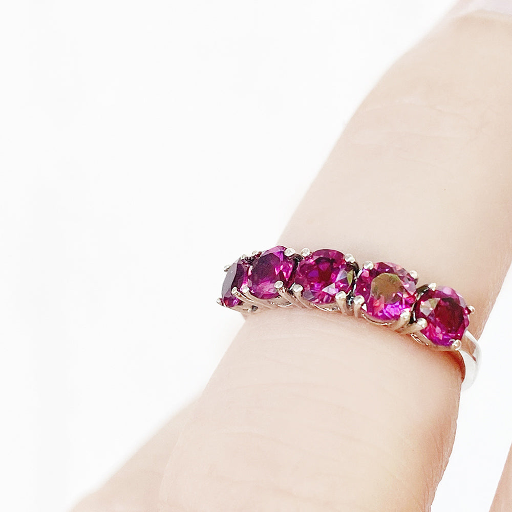 The rose colour variety of Garnet is loved for its brilliance and sparkle and its durability at 7 to 7,5 on the Mohs scale. Worn by the Pharaohs, traded during Roman times and revered during the Victorian times. Rhodolite's time is here again to take its place amongst the other pink stones.